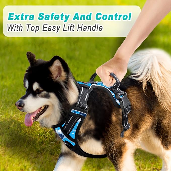 BARKBAY No Pull Dog Harness Large Step in Reflective Dog Harness with Front Clip and Easy Control Handle for Walking Training Running(Blue camo,S)
