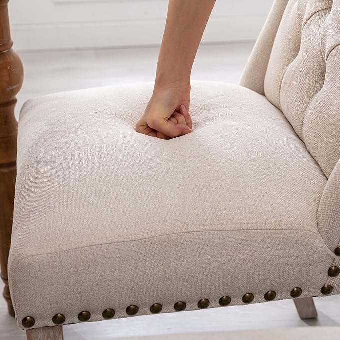 - š½ ELEGANCE DESIGN: It is accentuated by stylish button tufting, nailhead trim and classic wingback design, crafted from solid wood with padded seatcreate relaxed elegance for any space.
