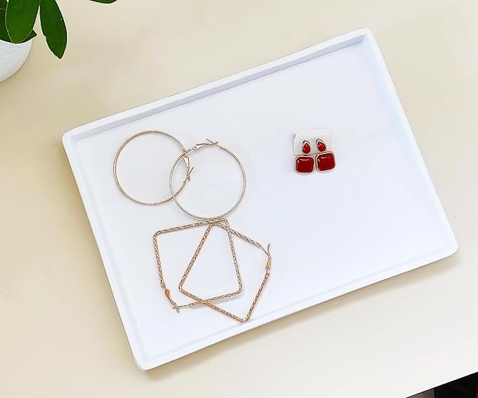 Small White Serving Tray (8.5 x 6.3 inch) for Serving Accessory, Spa, Coffee, Drinks, Wine, Tea, Bar, Party, Seasoning, Perfume or Display Use.