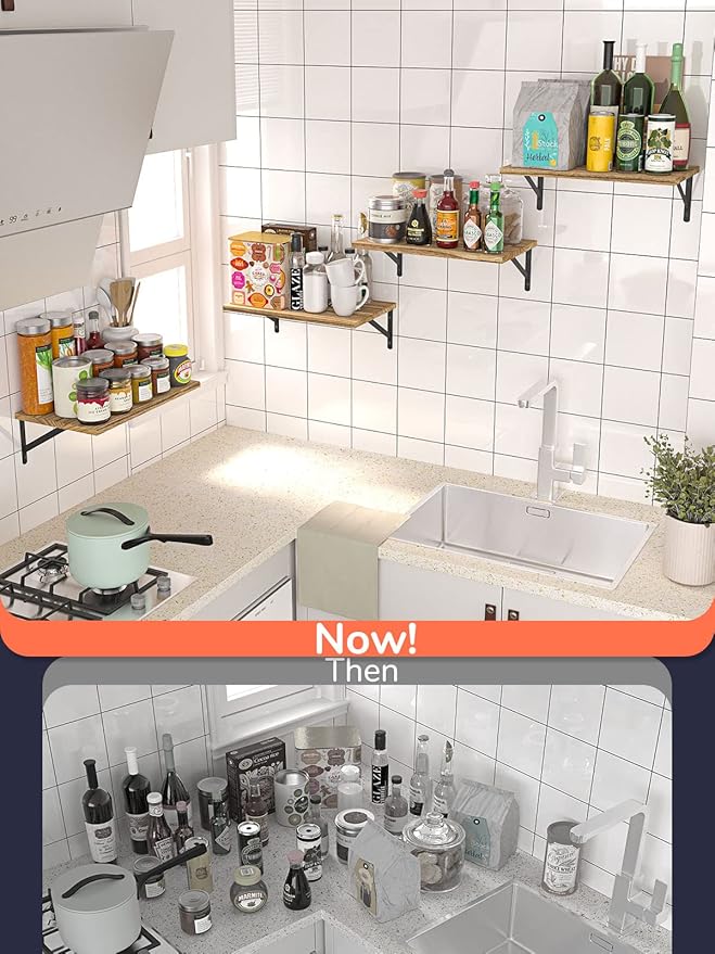 - 【Ideal for Home Decoration & Storage】Add your room a touch of nature! Our deep floating shelves have a rustic style look that will match most room styles. Perfect for kitchen, bathroom, living room, farmhouse, pantry, etc.