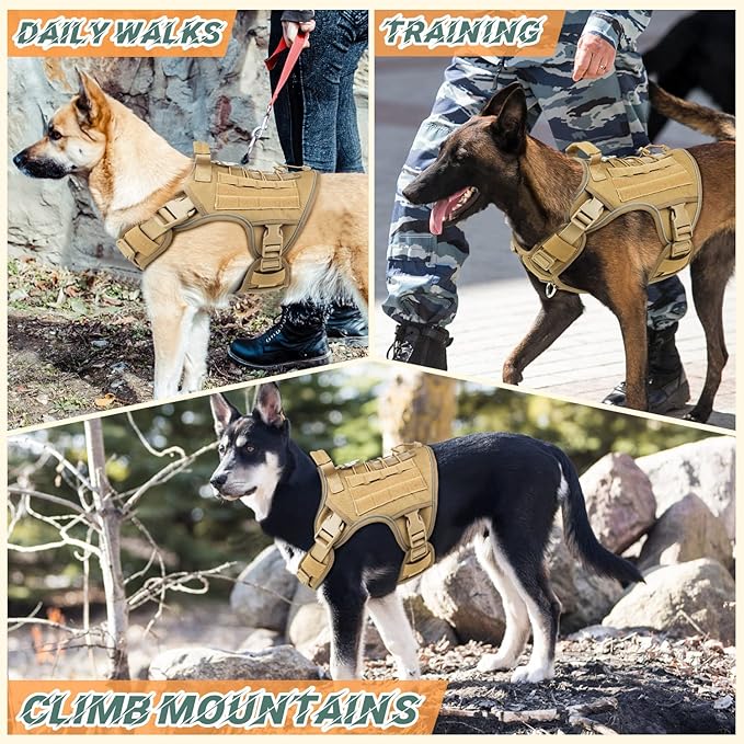 WINGOIN Tactical Dog Harness for Medium Dogs, Heavy Duty No Pull Dog Harness with Handle, Adjustable Reflective Military K9 Pet Vest for Pitbull, Female, Male, Walking, Training, Hunting, Khaki (M)
