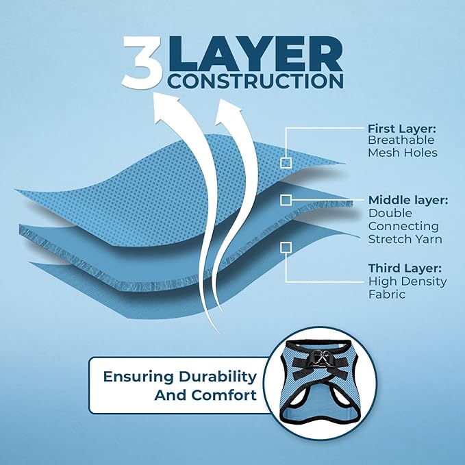 - Comfort All Year: Made with a soft and breathable air mesh, this lightweight, fast drying harness ensures maximum comfort for your pet during walks, regardless of the season