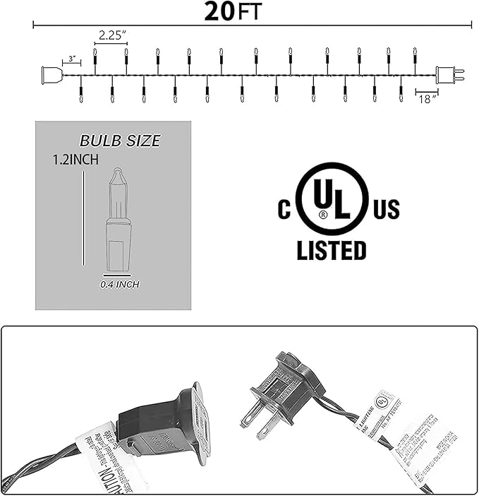 - Safe and Durable: The bulb is firmly connected to the base, so there is no need to worry about the bulb falling during the decoration process. Waterproof IP 44, the light string has a built-in fuse, pass UL safety certification, safety for use, suitalbe for indoor outdoor Halloween Xmas tree, party decoration.