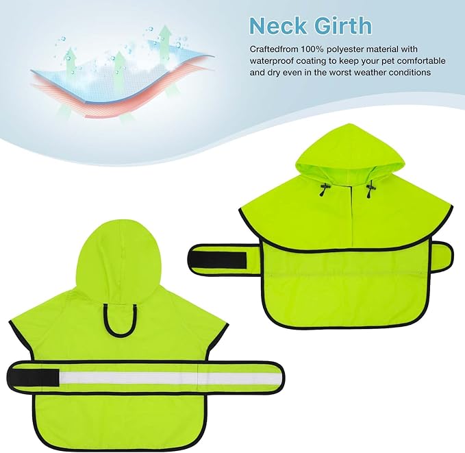 - 【WATERPROOF DOG RAINCOAT】This dog raincoat is made of waterproof fabric to keep your pet dry and warm when walking in the rain. It's lightweight and comfortable for your dog to wear all day long.