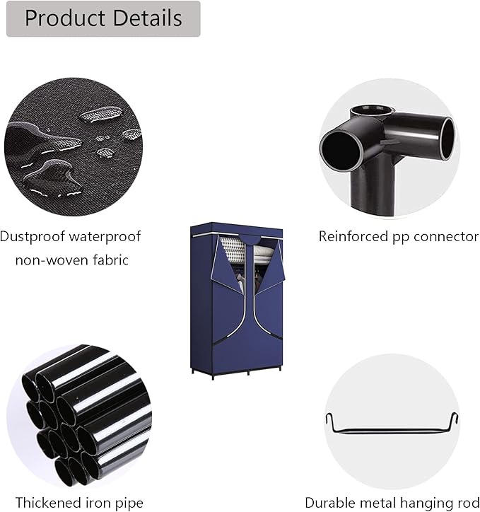 - 【Metal Frame,High Bearing Capacity】Thickened iron pipe,strengthened plastic connector,greatly improve the bearing capacity of the wardrobe,please rest assured to use.