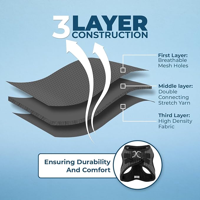 - Comfort All Year: Made with a soft and breathable air mesh, this lightweight, fast drying harness ensures maximum comfort for your pet during walks, regardless of the season