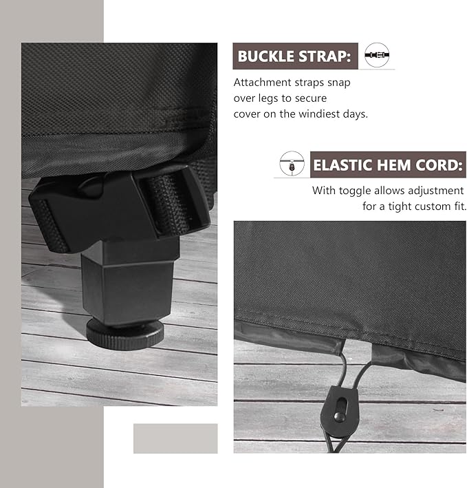 - Well-made structured air vents at two sides keep ventilation, prevent the cover from being blown away, also keep your furniture dry and in good condition.
