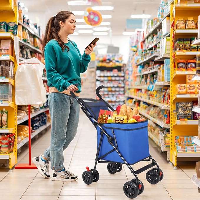 Wedyvko Pet Dog Stroller, 4 Wheel Foldable Cat Dog Stroller with Storage Basket, Handle 360° Front Wheel Rear Wheel with Brake for Small Medium Dogs & Cats (Blue)