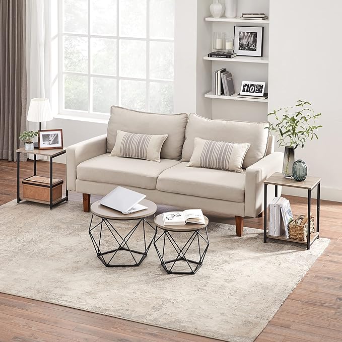 - [Streamlined yet Stunning] Giving an industrial look to any space, from the living room to bedroom, this side table has a clean, understated design while making an impressive statement with its rustic greige tone and matte black steel accent