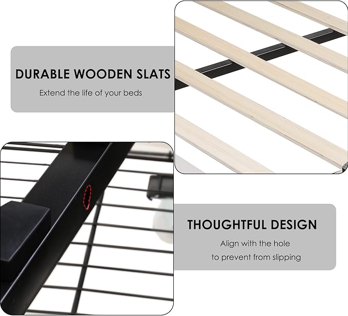 - Bed Frame with Tufted Headboard: The tufted headboard really gives the bed frame a classic design and with elegance and sophistication in every detail. adjustable headboard design 44.5-50 inch, allows you to use 8-12 inch mattresses.