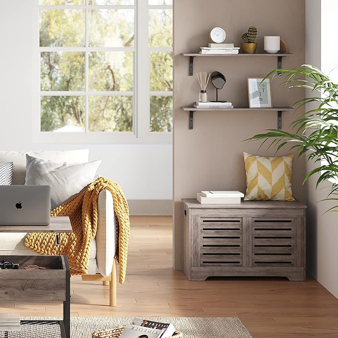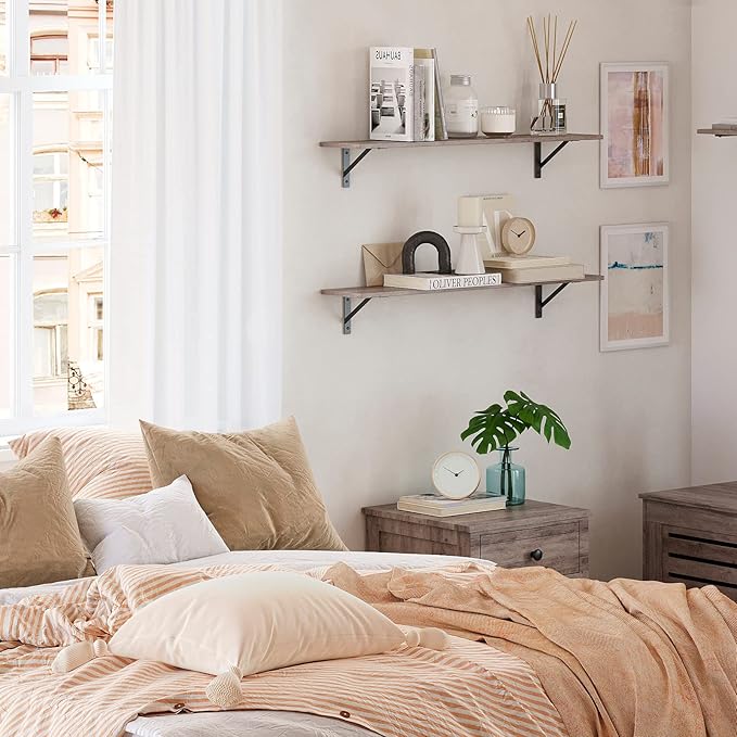 DINZI LVJ Long Wall Shelves, 31.5 Inch Wall Mounted Shelves Set of 2, Easy-to-Install, Wall Storage Ledges with Sturdy Metal Brackets for Living Room, Bathroom, Bedroom, Kitchen, Greige