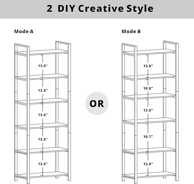 - Ample storage space: Our 6-tier ladder shelf provides ample storage area for all of your belongings.The dimensions are 12.6" D x 23.8" W x 80.7" H with compartment heights of approximately thirteen point eight"