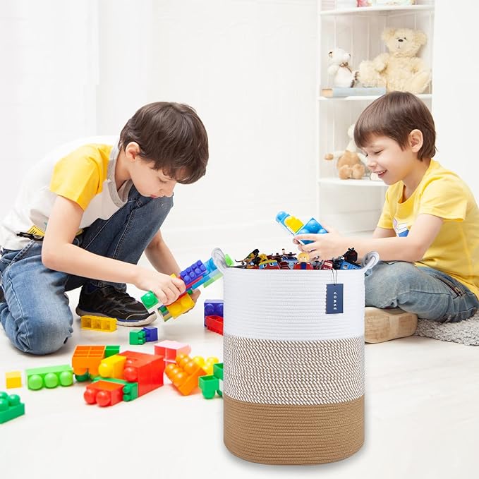 - 【Large Size】15.7" x 21.7", Tall blanket basket which is perfect for throw pillows, blankets, toys, clothing, Comforter or Cushions. Whether it is helping your child develop clean living habits, or as a decorative basket for your friends. With the appearances and practicality, we believe COMSE cotton storage basket is perfect as a gift for Birthdays, Festival.