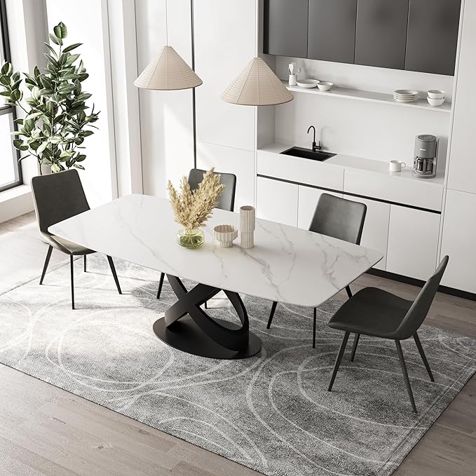 - Excellent Stability & Durability: The modern sintered stone kitchen table top can offers better exceptional resistance to scratches and heat than faux marble dining table top. It wonβt be a problem if you put any hot things on it. In addition, the solid A3 carbon steel construction of the X-shaped base provides excellent stability with a high load-bearing capacity, and it ensures that the table is not prone to wobbling during prolonged use. The combination of the two provides you with the best use experience, ideal for dining and hosting parties.