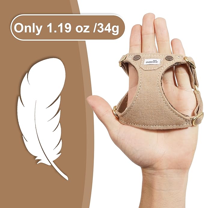 Puppytie No Pull xs Dog Harness with Multifunction Dog Leash,Soft Adjustable No Choke Escape Proof Pet Harness Vest,Denim Mocha Brown,XXS