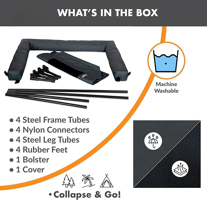 - MACHINE WASHABLE: Elevated dog bed's removable cover and bolster are both machine washable and can even be hosed off outdoors; extra covers in multiple colors are available for purchase separately as well