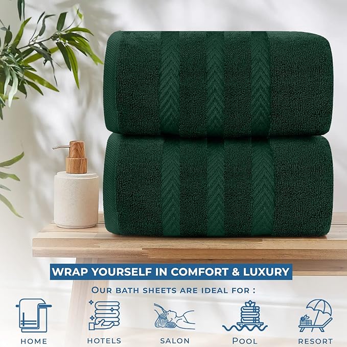 DAN RIVER 2 Pack Luxury Bath Sheets 35x70, 600 GSM, Soft & Quick Dry 100% Ring Spun Cotton Towels Ideal for Hotels, Spas, Gyms & Salons Extra Large, Hunter Green