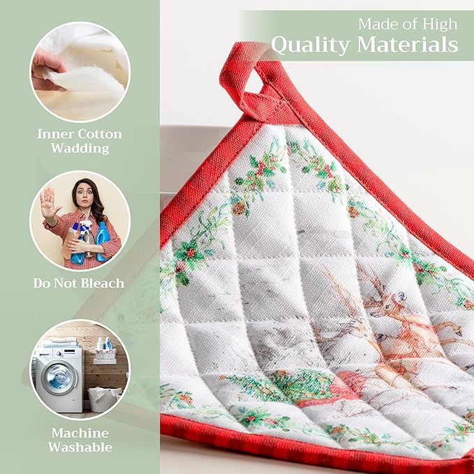 Maison d' Hermine Pot Holders 100% Cotton Heat Resistant Potholders 8" x 8" Hot Pads with Loop for Thanksgiving Christmas Decorations BBQ Cooking Handling Hot Pans (Pack of 1, Christmas Tradition)