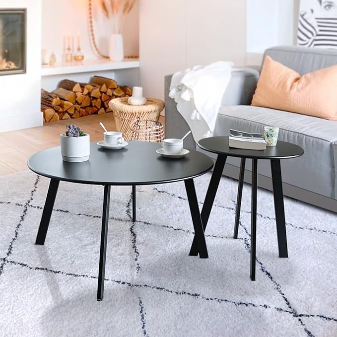 - 【Multi-functional combination】: Large side table: 28 inches (diameter) x 16 inches (height), small side table: 15.75 inches (diameter) x 18.75 inches (height).