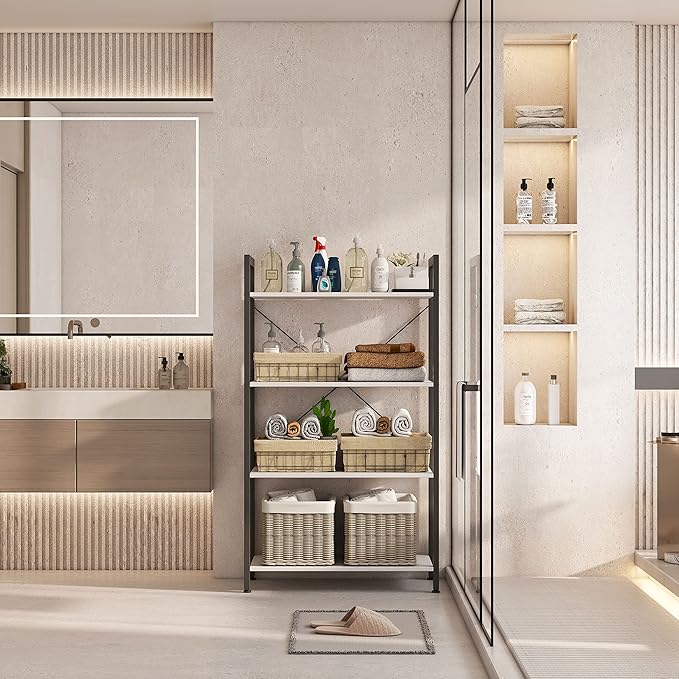 - [Bookshelf Size]: 4-Tier metal shelving unit size: 24"L x 11.8"W x 47.2"H, Each panel of the bookcase can hold up to 20 lbs.