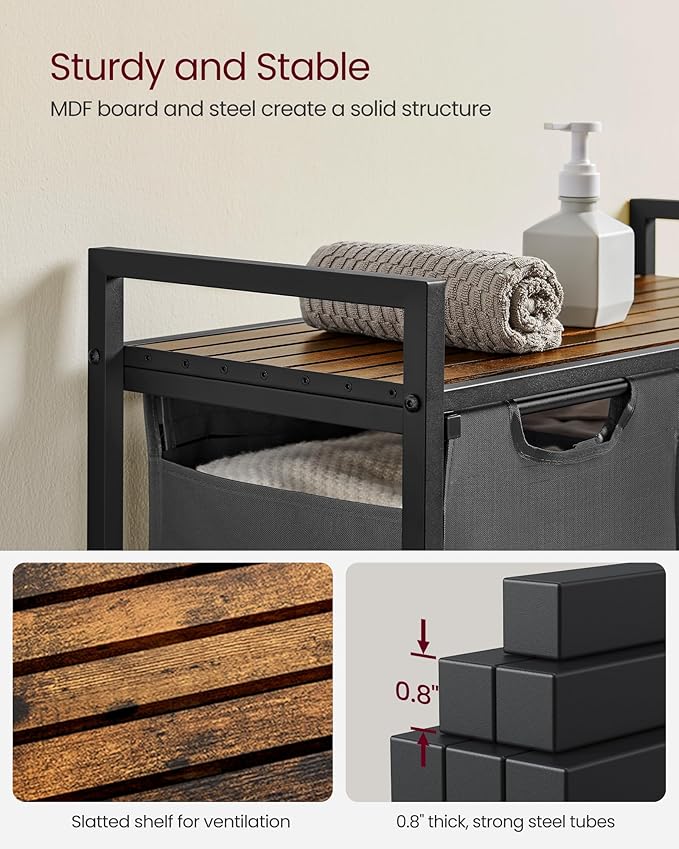 - Sturdy and Stable: With a 0.8" thick steel frame and MDF panel, the shelf of this laundry basket supports up to 44 lb. The Oxford fabric bags are water-resistant, and the 4 adjustable feet provide excellent stability