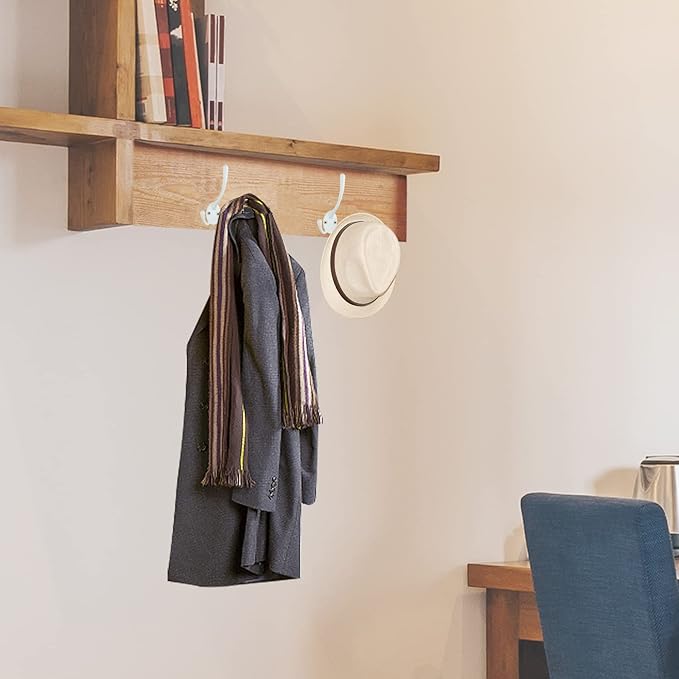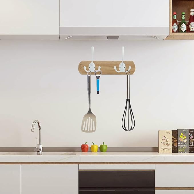 - High Quality Material: These three prongs hooks are made of good quality zinc die cast material, the screws are made of iron, it can easily hold up to 25 lbs of weight. Hard and sturdy, can widely support coat, big school bags, scarf, umbrella, bag, towel, key, hat, cup as well as Christmas socks and Christmas wreath.