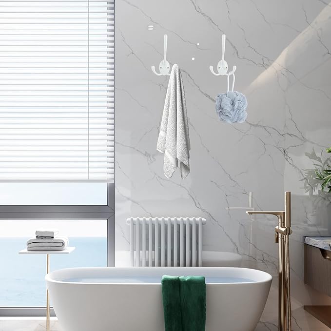 IBosins 6 Pack Big Heavy Duty Three Prongs Coat Hooks Wall Mounted with 12 Screws Retro Double Utility Rustic Hooks for Thick Coat, Big Heavy Bags (White)