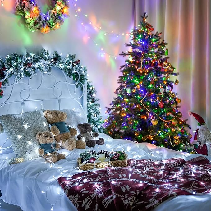 JMEXSUSS 200 LED Christmas String Lights Outdoor Waterproof, 66ft Color Changing String Lights Plug in, Cool White & Multicolor Christmas Lights for Trees Yard Wedding Xmas Party Decorations