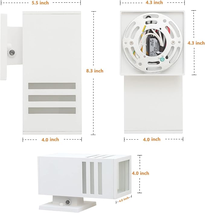 Dusk to Dawn Outdoor Wall Lamp, Exterior Light Fixture - ETL Listed, Aluminum Anti-Rust Waterproof Wall Mount Rectangular Design – Up/Down Photocell Outdoor Lighting for Porch, Garage or Patio