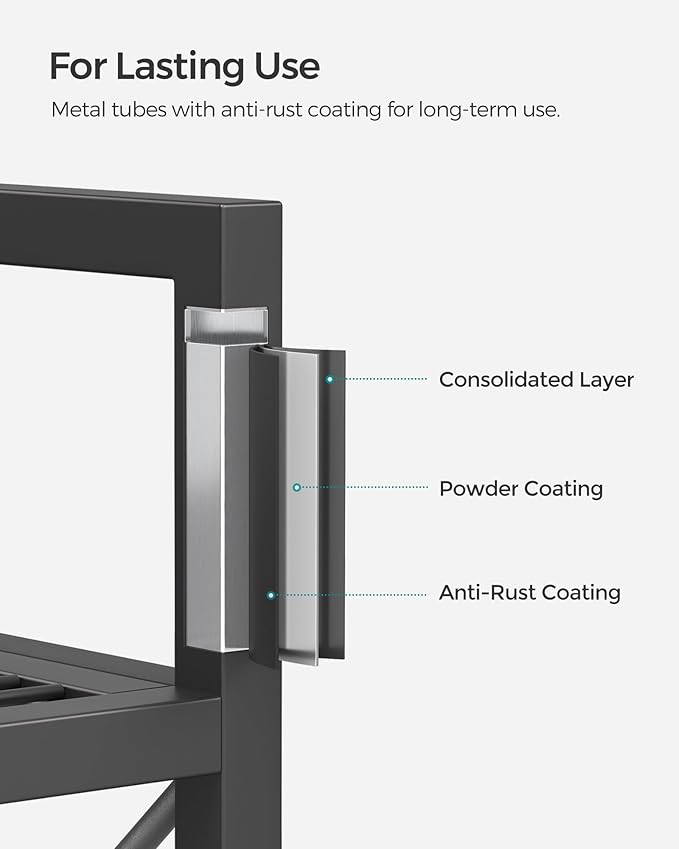 - [All-Metal Versatile Rack] The robust steel frame and mesh shelves combine into this durable storage rack. Use it in your entryway for shoes, in the kitchen for cooking utensils, and in your bathroom for toiletries for years to come