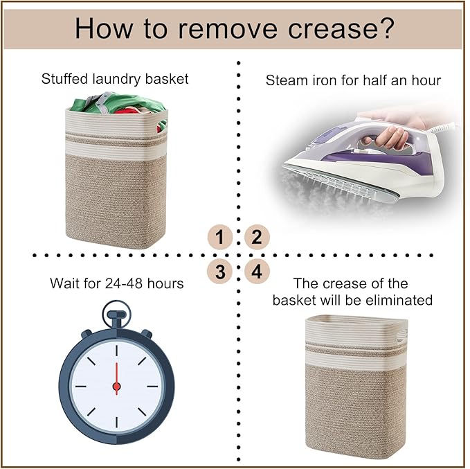 - Note: The laundry hamper is folded, but it will turn back to its elegant shape quickly if you fill it with some clothes or blankets, and iron is great idea to remove the creases