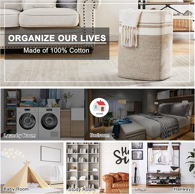 - Double reinforced Handles:We use the highest grade cotton rope as raw material and all the stitches are distribution and fine,which makes the baskets better wear resistance and durability to be used for many years.In addition,each large basket features thick,double stitching around the handles to prevent ripping and keep its shape,never fall off