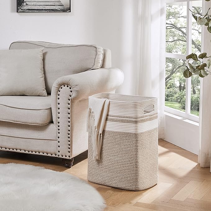 - Oversized Size Blanket Basket:The overall size of the storage basket is 16x13x22 inches.This large basket can easily accommodate a family's change of clothes and keep room clean & tidy.This elegant woven storage basket bring great convenience in life to store bulky items like blankets,toys,comforters,duvets,throw pillows,cushions,stuffed animals,winter clothing etc