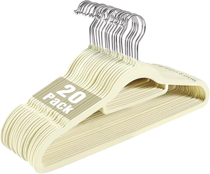 20 Pack Non-Slip Velvet Suit Hangers with 360° Swivel Hook - Space Saving Beige Clothes Hangers, Heavy Duty for Adults
