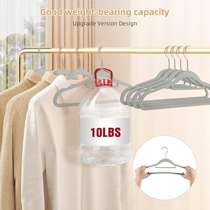 20 Pack of Grey Velvet Non-Slip Suit Hangers with 360°Swivel Hook - Heavy Duty, Space Saving, and Perfect for Adult Clothing.