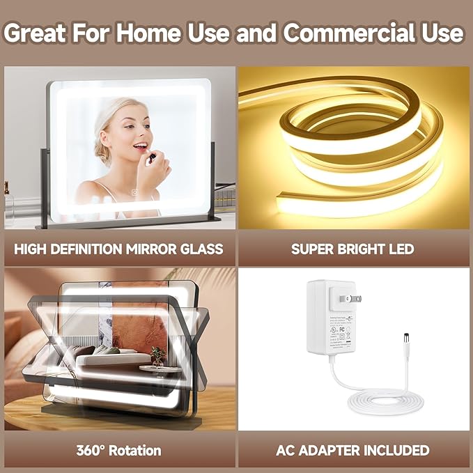 - ✅Suitable for Home and Commercial Use: This LED vanity mirror caters to both personal and commercial needs, making it perfect for use in hair, makeup, and beauty salons. It is also an excellent addition to any home setting, adding a touch of luxury and practicality to any space.