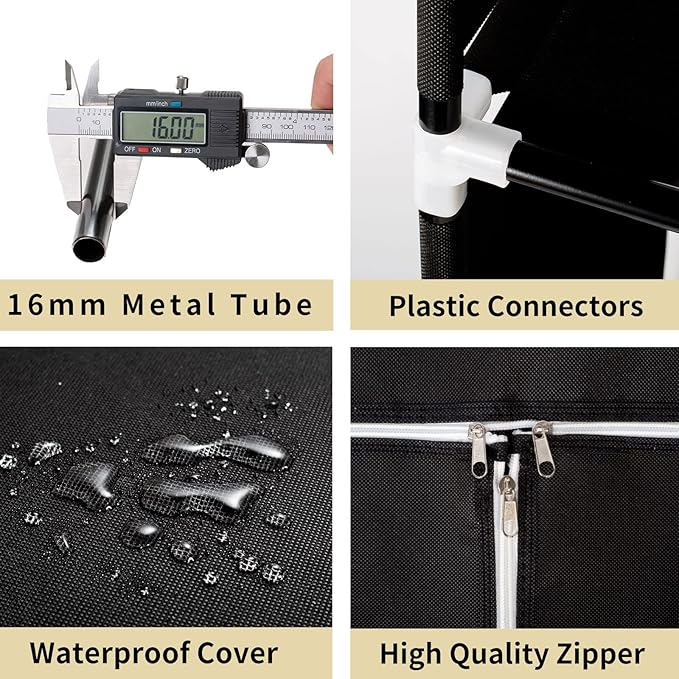 - STURDY STRUCTURE: The portable wardrobe closet selects 16mm diameter round tube and PP plastic connector with a non-woven fabric zipper cover, It is very strong to bear heavy weight. The frame is stable and not easy to bend, ensuring long-lasting use.
