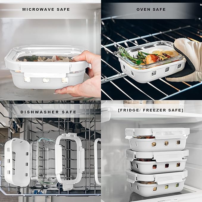 - EASY TO CLEAN & STORE: The premium glass food storage containers have an easy-to-open and close lid design with a removable silicone loop, making them very easy to clean.