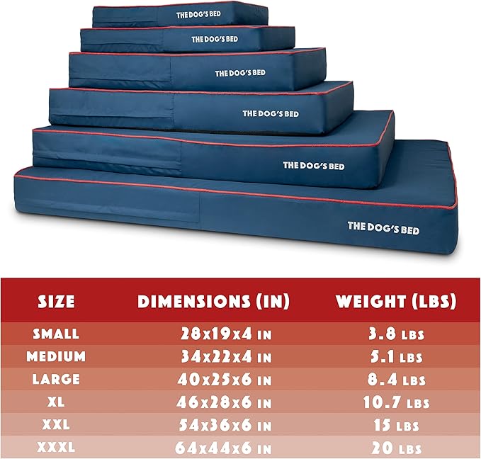 The Dog’s Bed Orthopedic Cooling Memory Foam Dog Bed, XXL Blue & Red Trim, Pain Relief for Arthritis, Hip & Elbow Dysplasia, Post Surgery, Lameness, Supportive, Calming, Waterproof Washable Cover