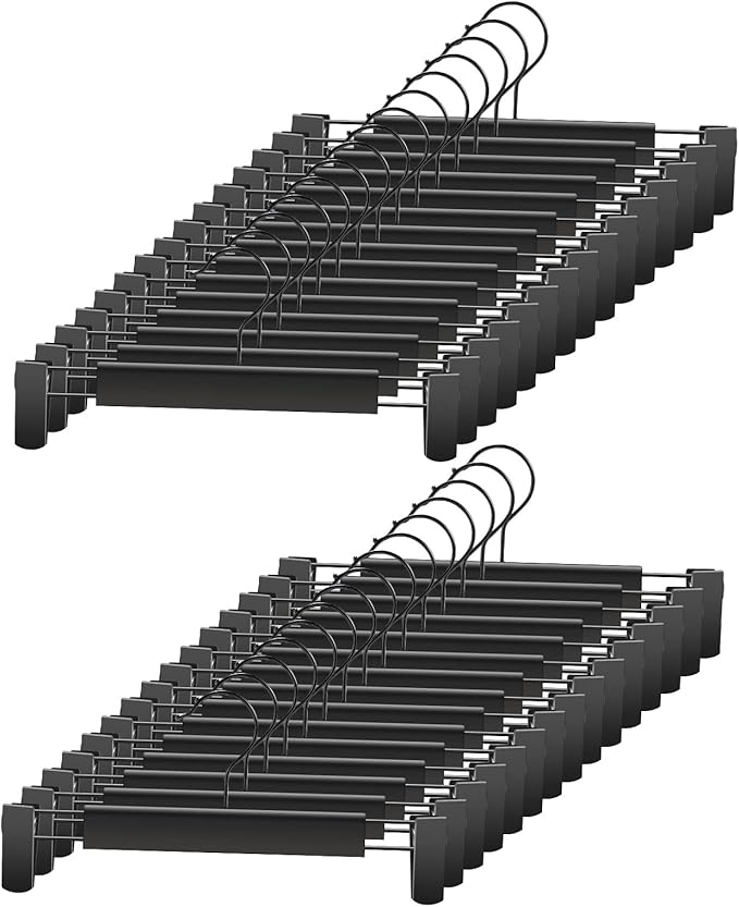 Clothes Pants Hangers, Space-Saving Skirt Holders with 360 ° Swivel Hooks, Adjustable Clips, Trouser Hangers, Clothes Coat Garment Jeans Hangers (30 Pack, Black)