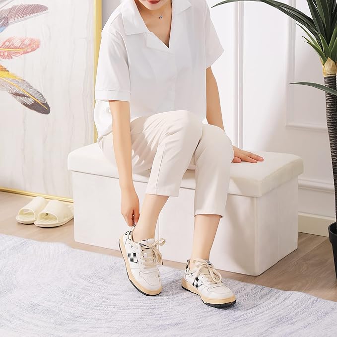 CUYOCA Storage Ottoman Bench Foldable Seat Footrest Shoe Bench End of Bed Storage with Flipping Lid, 75L Storage Space, 30 inches Velvet Cream