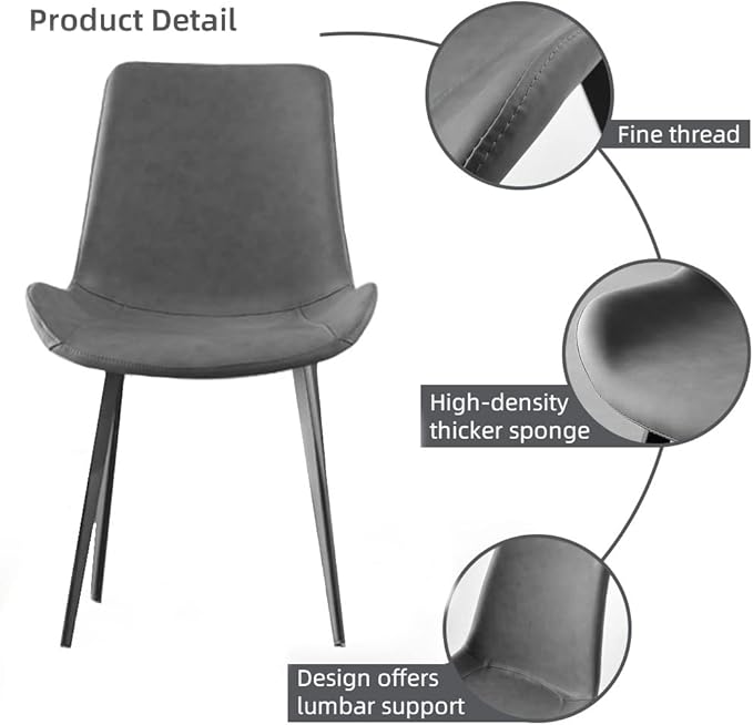 Dining Chairs Set of 2, Modern Kitchen & Dining Room Chairs, Upholstered Faux Leather Cushion Seat and Sturdy Metal Legs (2 Grey Chairs)
