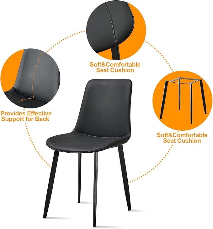 - MODERN DINING CHAIRS : These Mid Century Modern black dining room chairs consist of exquisite faux leather upholstery and sturdy metal chair legs. It will be an indispensable part of relaxation in your life. Enjoy your meal time. With these comfortable leather dining chairs, mealtime becomes more fun and easy!