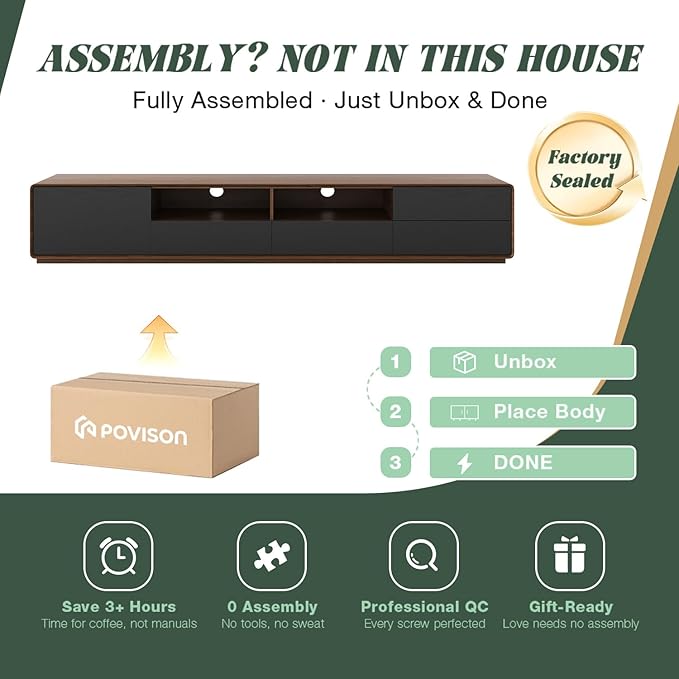 Modern Solid Wood TV Stand, Lowline Media Console with 4 Drawers, Open Storage Cabinet, Walnut Veneer, Fully-Assembled, 78"