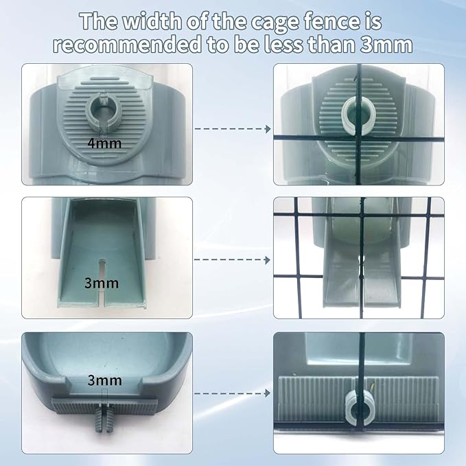 - Two Way to Use: Tfwadmx water feeder and food feeder are both suspension designed, you can place them directly on the ground, or fix them to one side of the cage through the screw cover, preventing pets from tipping over the water and food bowls. Both feeders are detachable, so that you can put them anywhere, saving space