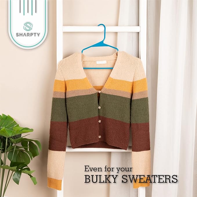 - π MAXIMIZE SPACE AND KEEP ORGANIZED: Sharpty PLASTIC HANGERS are designed with a slim profile to make the most of your closet space while keeping it neat and tidy! Save time while getting dressed with our high quality hangers, as you can easily find the clothes you need.