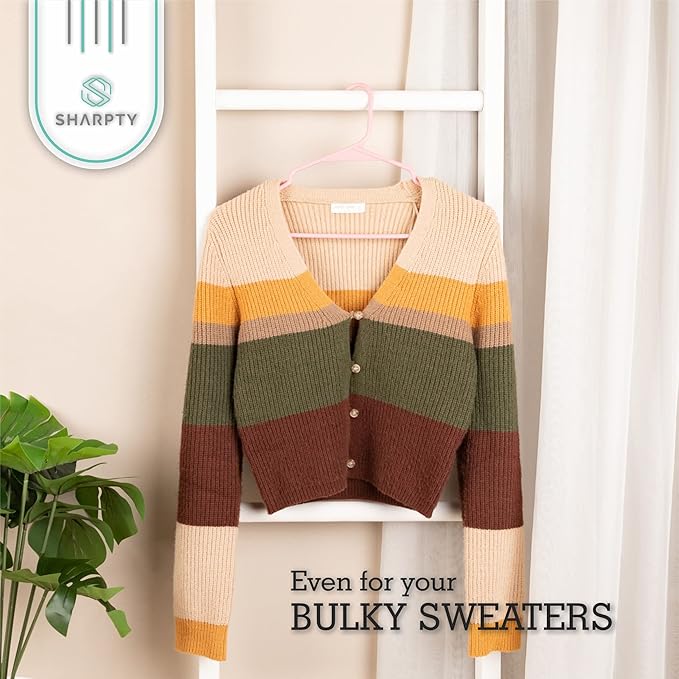 - π MAXIMIZE SPACE AND KEEP ORGANIZED: Sharpty PLASTIC HANGERS are designed with a slim profile to make the most of your closet space while keeping it neat and tidy! Save time while getting dressed with our high quality hangers, as you can easily find the clothes you need.