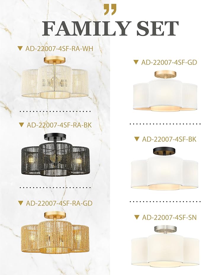 - FARMHOUSE STYLE - Utilizing a fabric shade and a matte brass finish, the farmhouse semi flush mount ceiling light offers a farmhouse minimalist feel. These light fixtures ceiling mount can not only light up your whole room – but this is also a great way to show off your personal style.