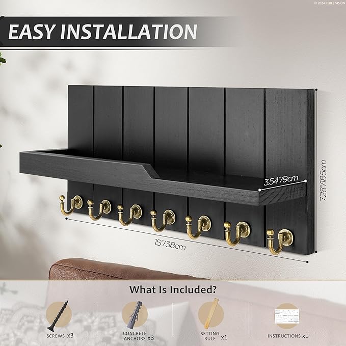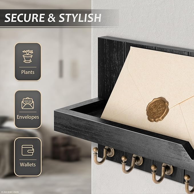 - 【KEEP KEYS WITHIN REACH】 Do you often loss important emails or rush to find your keys just before you leave the house? Rebee Vision key and mail holder with hanging shelf helps you keep keys and important materials at your fingertips.Are you still hesitating?