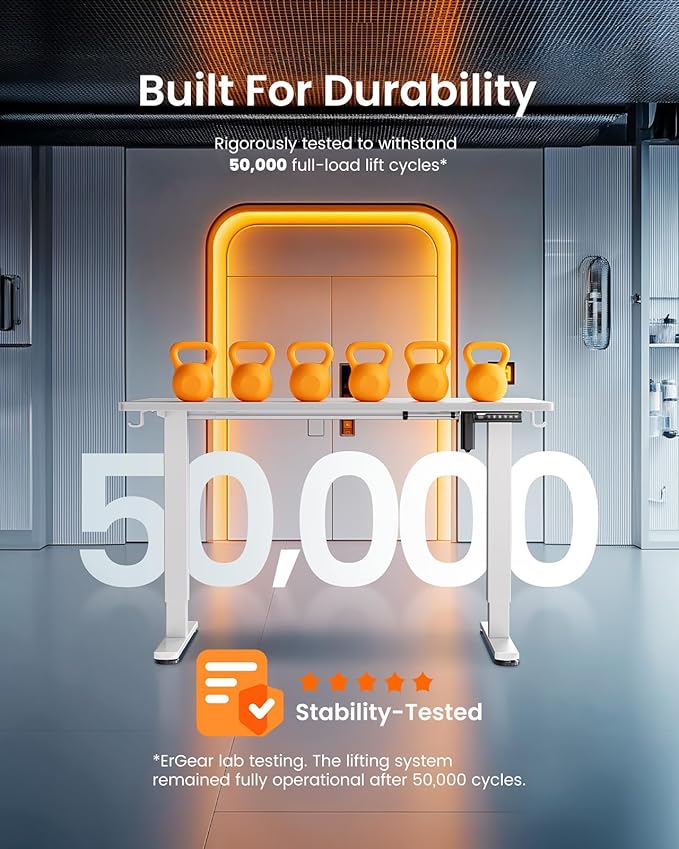 - Outstanding Stability: This electric standing desk has a sturdy solid steel frame with aerospace-grade lifting column connectors (still stable & secure after testing 100,033 times). It's a firm foundation for work, even at full height